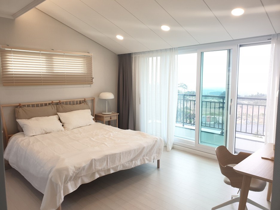 2층 안방 이집의 제일 매력적인 공간으로 층고도 높고 창이 많아 제주바람을